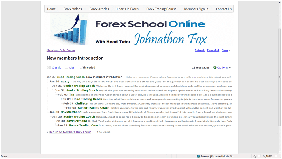 Forex School Online was created by an Australian-based Forex trader named Johnathon Fox, who continues to manage the website and respond to traders’ questions and forum posts in the members-only Forex forum. Mr. Fox writes with a direct, conversational tone which is more inviting than many of the Forex courses we’ve tested that seem to be overly complex in their efforts towards professionalism. Traders can browse through dozens of articles to get an overview of the price action trading system and to gain a full understanding of what to expect in the Forex School Online course.