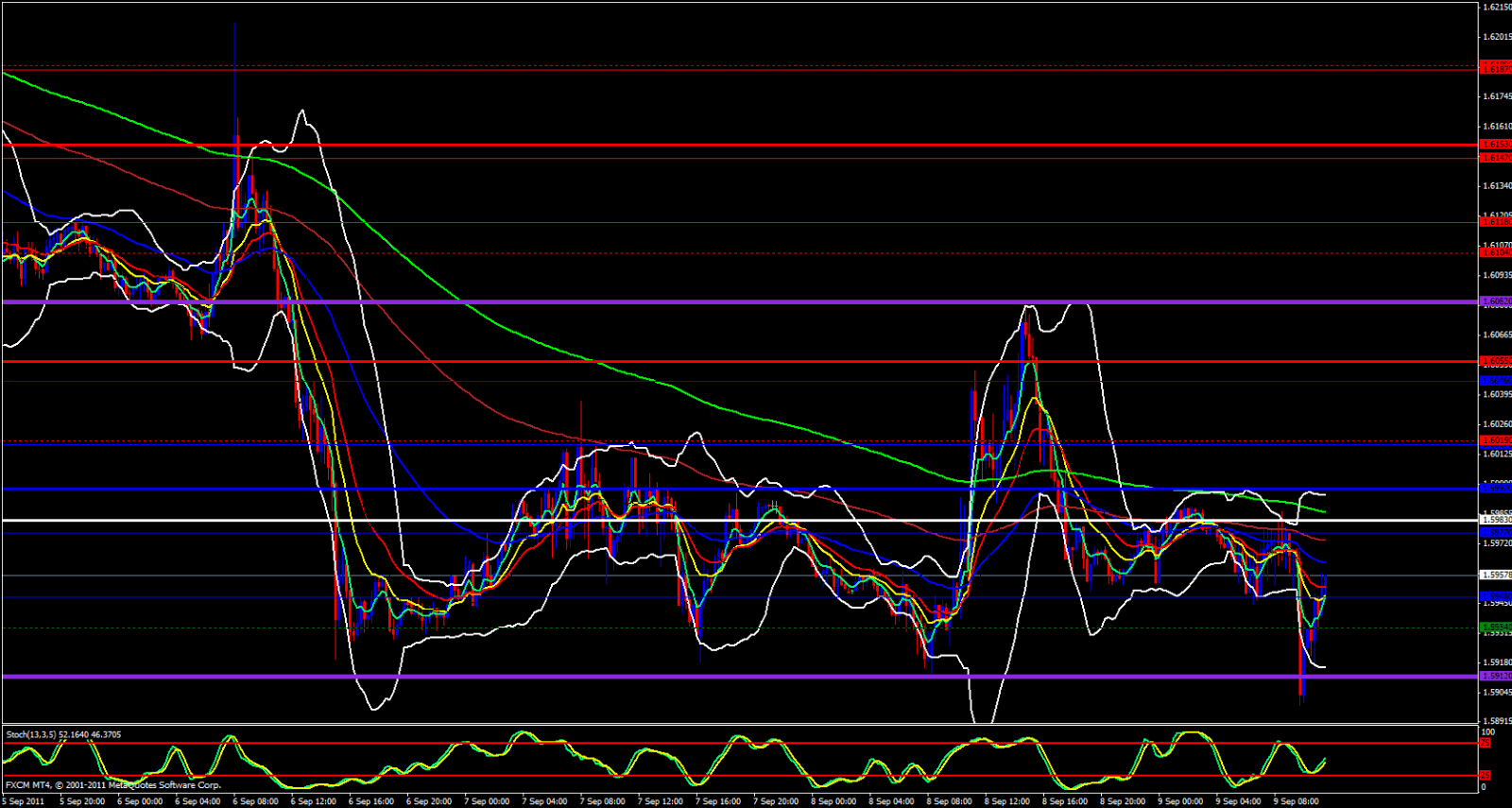 I would set my stop just below 1.5974 On the other hand, we are also making a fib of the recent drop and price could continue to move down. If it falls I would watch for it to break 1.5934 go down to 1.5912, bounce up then retest 1.5934 then I would look at shorts with a tight stop loss.