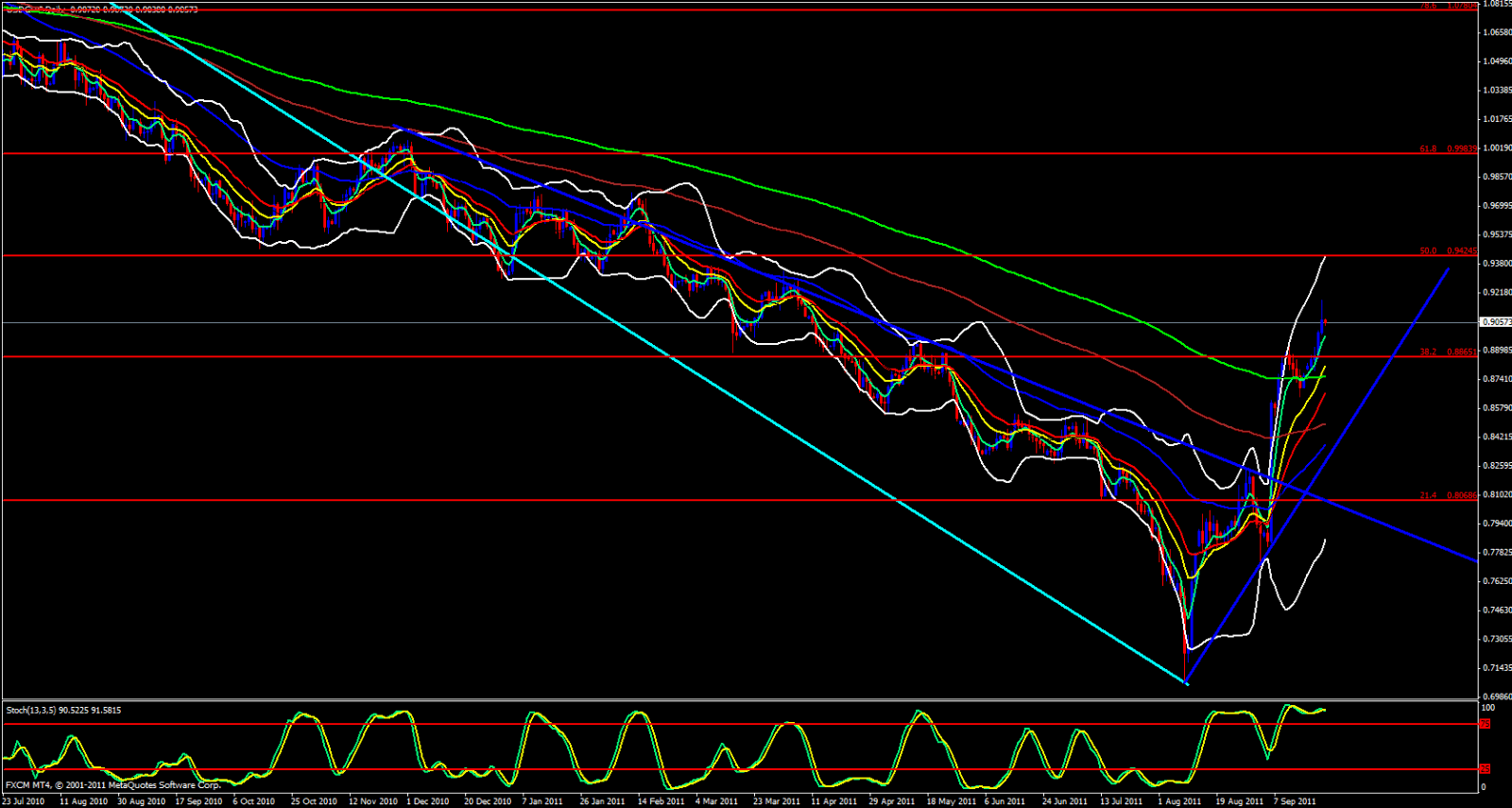 Price could keep climbing its way to 1.1700 but until it reaches that area it could be pulling back at each and every fib level along the way. I do see that price could pull back to the 0.8940 but it doesn't have to.