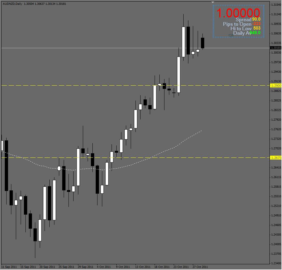The pair known as the Aussie/Kiwi appears to be setting up to break higher. A series of lower highs and higher lows on the daily charts is hinting at a break out favouring the bulls. Price has been trying without success to break and hold above 1.3600 for the past 4 market days, and only a few hours after the open of the Asian sessions we see prices pulling back but holding above 1.3003 so far. There appears to be some heavy support at this level, but should it break, we will see more support at 1.2934, 1.2860 and 1.2800 well below that. If in fact the Bulls do take control, look for more resistance at 1.3075, then the previous high from June at 1.3160 and very strong resistance at 1.3200. Price has reversed several times in the past year from this zone at 1.3200 and I see no reason why this isn't a possibility again. We are well above the Moving Average and the last 3 monthly candles have all been Bullish...supporting a potential break higher.