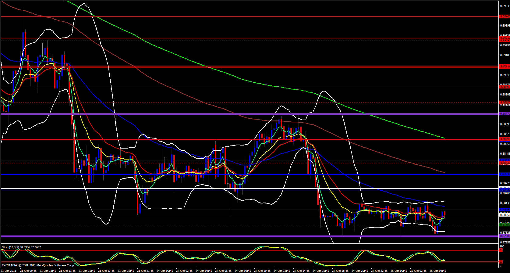 Finally on the 15 minute chart I see that price is below the central pivot point but in a consolidation range. I expect that when price reaches 0.8823 which overlaps with the daily central pivot point and the hourly 21 ema. The USD appears to be weak as of late and I expect continued bearish price action for this pair. A break below 0.8790 could be a nice opportunity to enter a short.