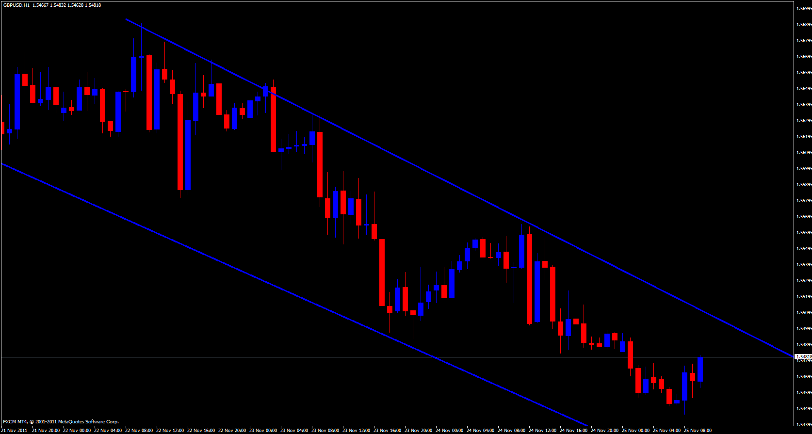 The 21 and 144 ema's are still pointing and heading down so the downtrend continues. I would keep a close eye on the 1 hour timeframe and trade from the top or bottom of the channel and watch for breaks, most likely tot he downside.