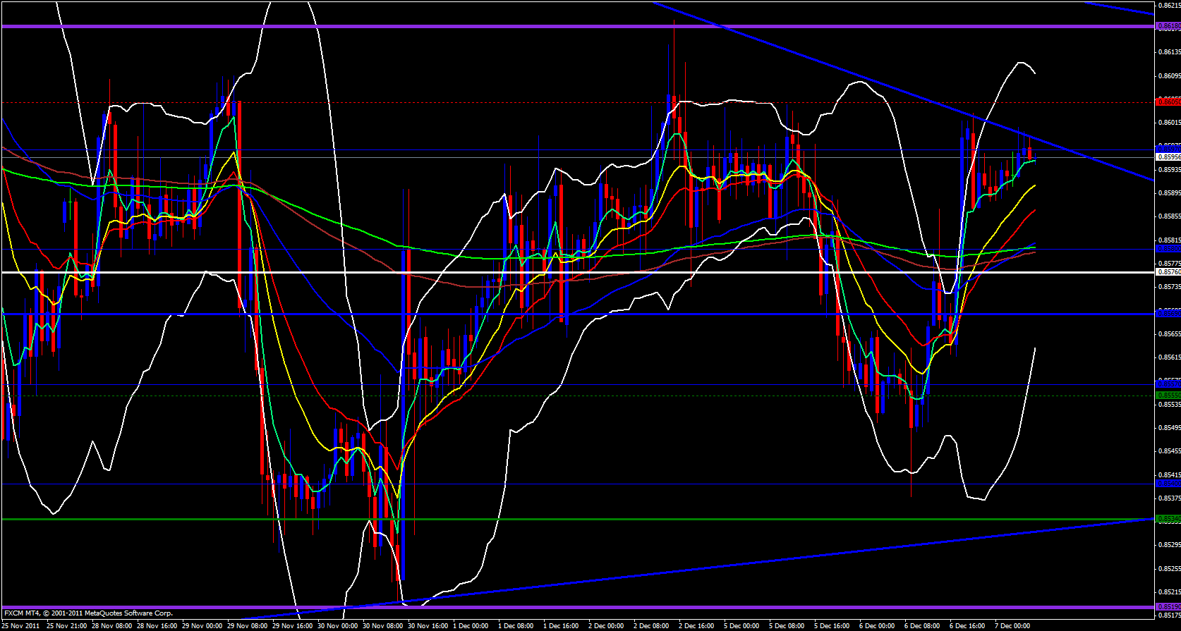 The weekly M3 exists at .8605 and price is currently at .8596 and for price to initiate an upside breakout .8605 must first be broken. If price breaks that level the next fight zone will be around .8616 and if that level is broken price should be home free until .8650