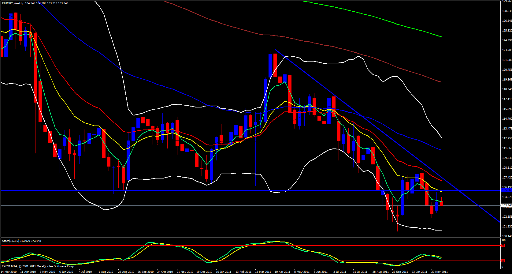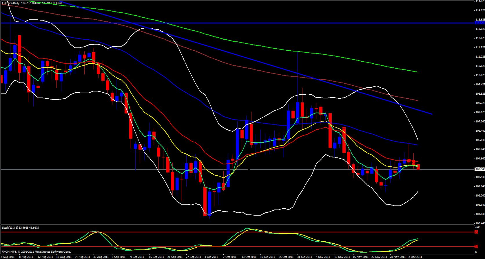Yesterday I stated in my analysis that the EUR/JPY looked bullish because on the weekly time frame price had opened up just above the 5 ema. I have to honestly say I don't know what I was thinking at the time since I was bullish on the Swissy and bearish on the EUR/USD and I should have been bearish on the EUR/JPY due to the laws of correlation. Price may have been slightly above the 5 ema but it didn't take long for it to drop.