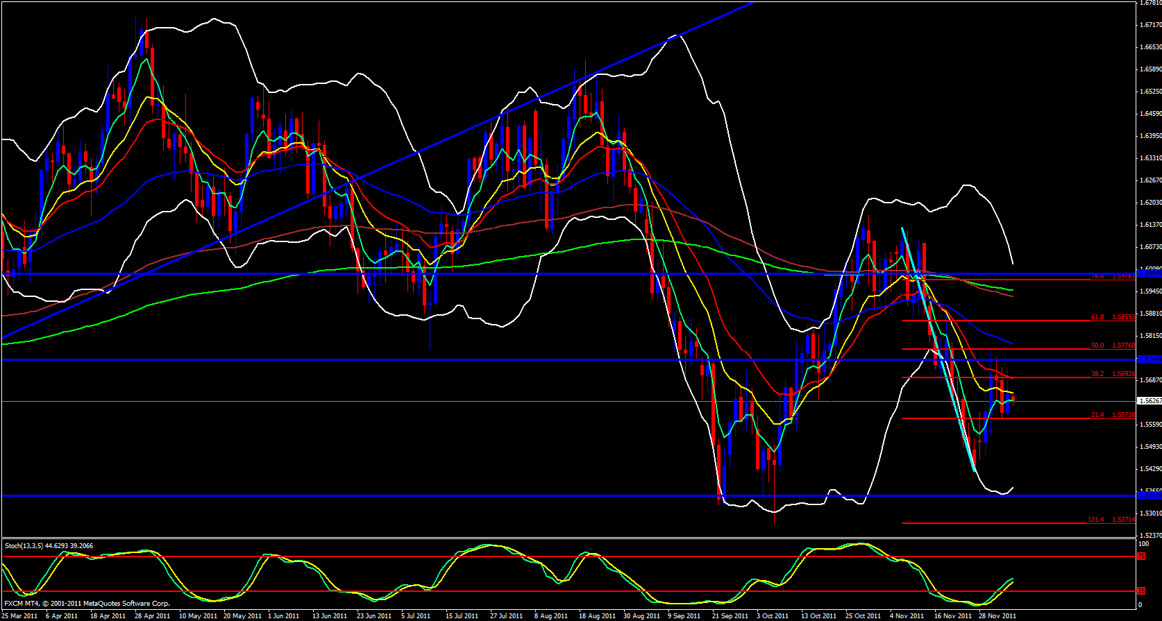 Yesterday the GBP/USD made its way up to the daily 21 ema overlapped with the 38.2 fib then dropped and is still dropping. This just goes to show the power behind fibs and ema's especially when they are overlapped with each other. Today price opened just below the 13 ema and is already slightly below the 5 ema.