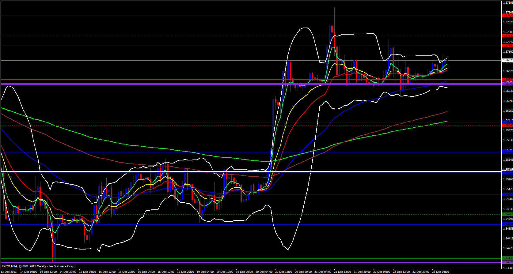 On the 15 minute timeframe price appears to be slowly rising, however, the daily R2 pivot is at 1.5720 and currently price is struggling to break the daily M3 pivot. If price breaks 1.5730 I expect it to head up to at least 1.5765, however, if it drops below 1.5680 I expect it to fall to 1.5640 I don't expect any major price action today since it is the last day of the trading week and the Christmas weekend.
