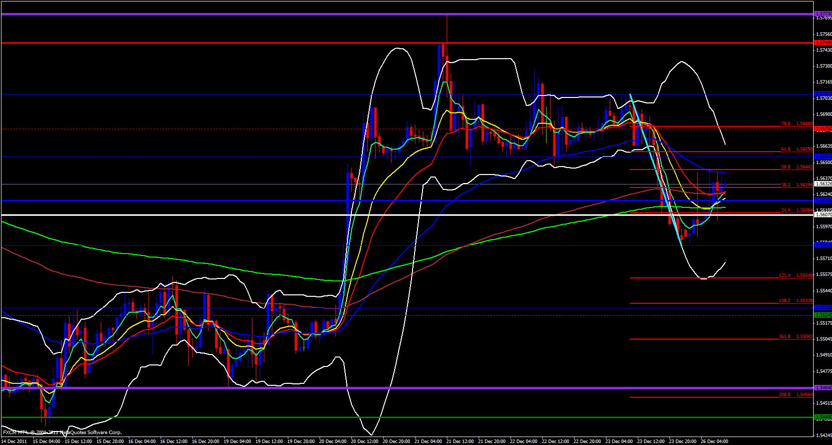 On the 15 minute timeframe the 233 ema exists at 1.5645 which overlaps with the daily M3 so it would be safe to say that anywhere between 1.5645 and 1.5665 is resistance and this is the zone where I would expect to see price begin to fall and continue downward, however, I have said it several times today in my analysis to expect thinner than usual market conditions and not to expect much follow through on the moves since the market is short on traders today.