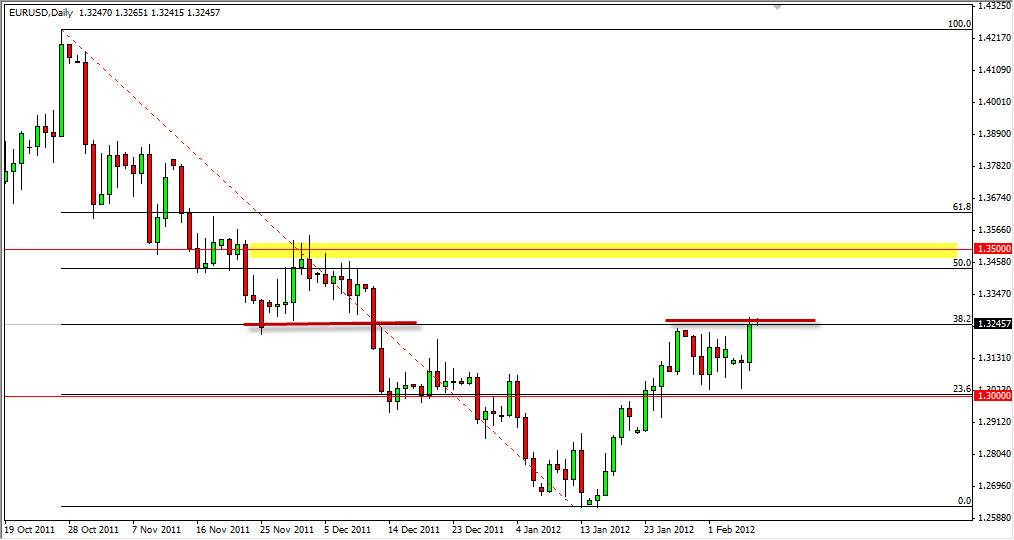 EUR/USD continues to trade in the fairly tight range that we have seen recently, as the markets are being driven on emotion more than anything else. The Tuesday session saw rumors and markets that wanted to get “ahead of the news”. The possible agreement coming out of Athens between the Greek government and the Troika sent the Euro higher against most other currencies around the world. The announcement in Athens never came, and in fact the government officials that were supposed to vote the new agreement into law cancelled their meeting simply because there was nothing to vote on. None the less, hope remains eternals when it comes to the EU.