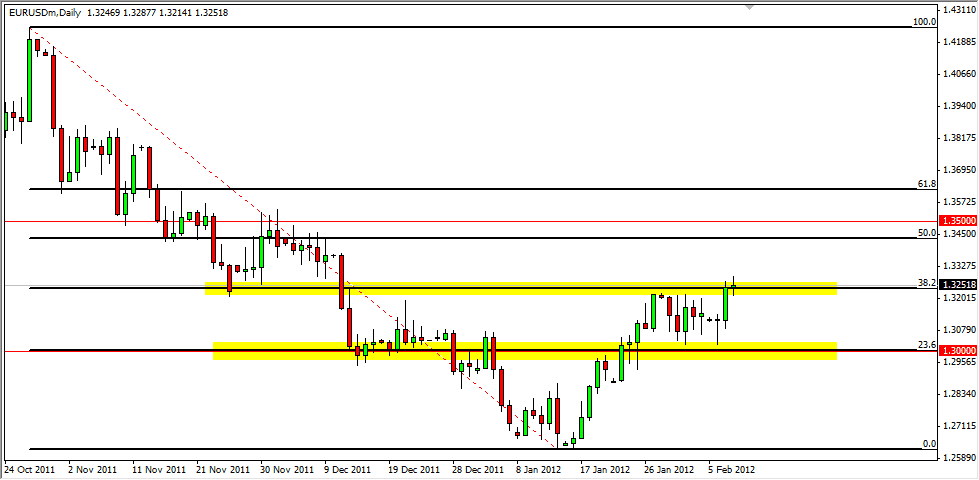 The 1.32 level is an important one, albeit minor in the big scheme of things. The 1.35 level above shall continue to be resistive, and a knee-jerk reaction to the talks to the upside will find the market looking for sellers at that point. The 1.309 level below is supportive. The trade for me will be to look for weakness at 1.35 if the deal gets worked out, or to sell right away if the talks fail. I am still unconvinced about the Euro overall at this point, and am not ready to buy it yet.
