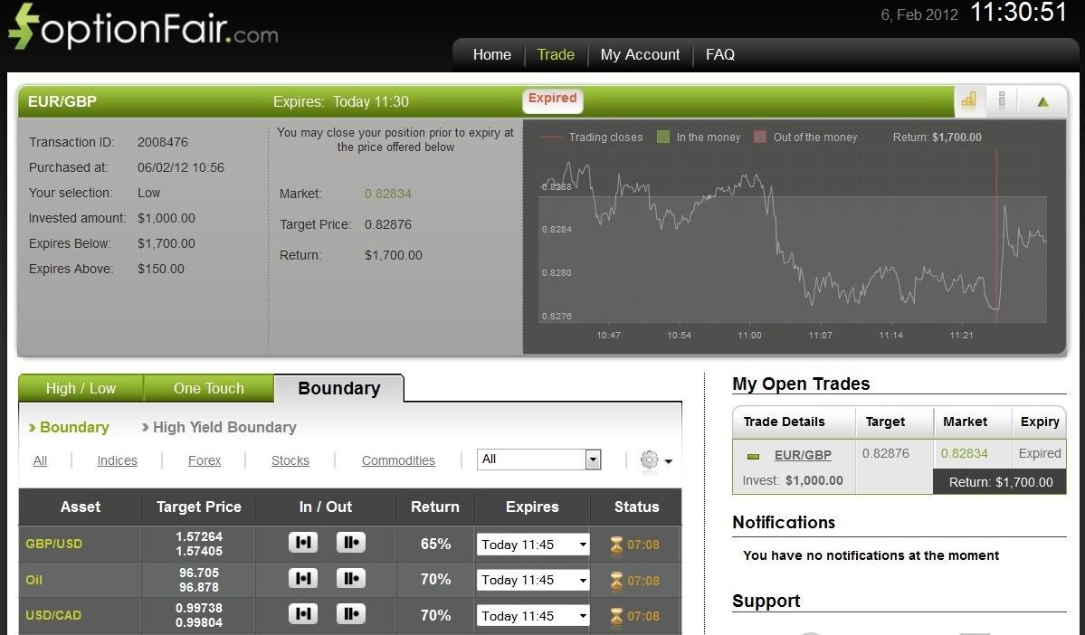 With optionFair™ Binary Options Trading Platform, I traded with $1,000 on the “High” instrument.