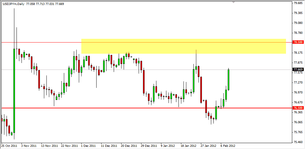 USD/JPY has been a highly manipulated market lately, and the Bank of Japan has even gone so far as to admit that it had been clandestinely intervening in the recent past. Although they didn’t necessarily say where – the 76.50 level seems to be an obvious candidate for intervention levels.