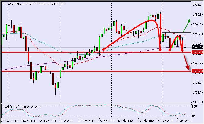 The instruments that are not participating in this party are the precious metals, which have difficulties to recover from the sharp declines that occurred two weeks ago. As you recall, Bernanke has talked about the gold's prices and said that the level of $ 1800 reflected a bubble. This caused immediate heavy selling of the metal that slid down to $1660 points. The short positions holder started to take profits around this support and helped the gold correct to $1720 but then the sellers took the lead and now the gold is approaching the support at $1660 again. It created the "Inverted Cup & Handle" pattern above this support and a strong break-down might take the price down to $1600. However, this support seemed to be strong and therefore the gold might try to rise above $ 1700 again.