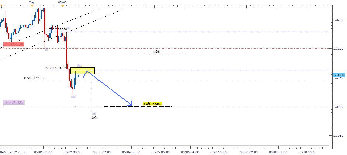 Description: In a descending falling trend line, a drop in trend just took a place in a larger Zigzag within triangle as of wave A and in term of motive, wave iii just completed 1.31220 and getting in a complex wave iv and that just got above 50% of the whole cycle (Black Line) targeting 0.318 Fib level or 1.31630. I expect a further drop as of wave v of larger wave (A).