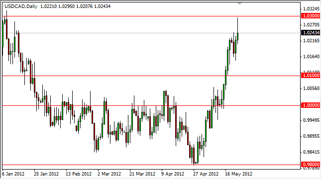 The USD/CAD pair shot straight up on the Wednesday session as the “risk off” attitude still remained king. The pair ran into the 1.03 resistance area though, and then promptly fell 60 pips or so. The resulting candle is a shooting star, and as a result there are potential bearish scenarios creeping into the markets at the moment.
