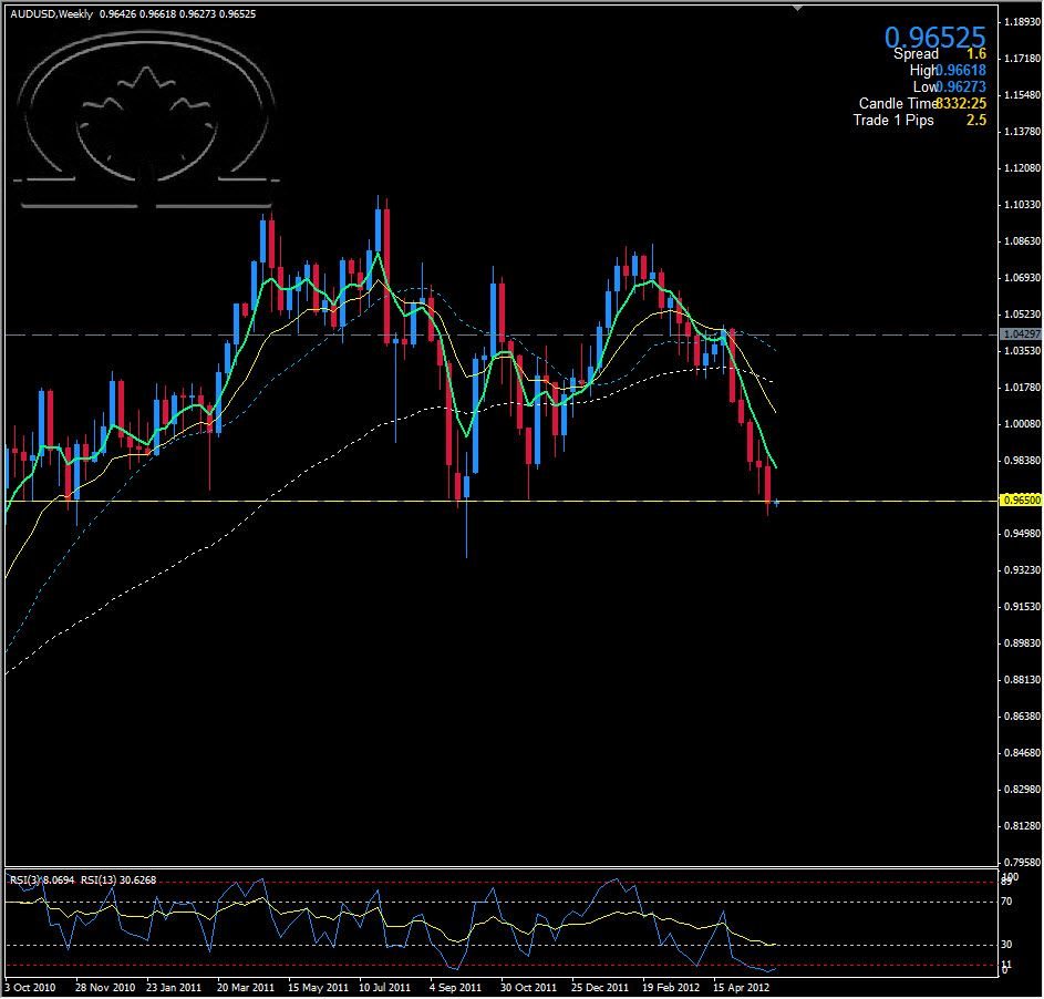 With the less than stellar numbers from the USA's Non Farm Payroll report as well as lower spending numbers from the ISM Manufacturing PMI, the USD is showing some signs of slowing its advances against other major and minor currencies alike. Including the Aussie Dollar. The monthly chart shows us that the pair has reversed from the current price point many times, establishing a 'floor' at this level over the past 8 months. At the close of the Forex markets last week, the AUD/USD was perched just above this floor, a major support level at 0.9650 and sank to 0.9627 during Asian trading hours before showing sings of reversing. When the market closed last week, the Daily candle had printed as a pin bar reversal pattern wicking slightly below this strong support level, so it is highly possible that we will see the AUD/USD trade higher after the Western Markets run their course today. Look for resistance at 0.9660, 0.9700 and 0.9745 with Weekly levels of resistance at 0.9830 and a monthly pivot at 0.9940. Support will be seen at 0.9630 , 0.9602 and 0.9520 intraday with weekly levels of support at 0.9500 and 0.9390. I would not be surprised to see the AUD/USD pull back to parity this week or next.
