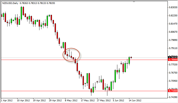 The NZD/USD pair will more than likely have a big move in the next couple of trading sessions. This isn’t anything related to the United States, or even to Auckland. Rather it is all based upon the Greek elections on Sunday. In a nutshell, there is the pro-austerity and the anti-austerity parties running neck and neck in this election, and the markets simply have no way of knowing which way the vote will go. If the anti-austerity party comes out on top, there are going to be a lot of nervous bankers. (Who would have guessed that they would have trading losses like the rest of us?)