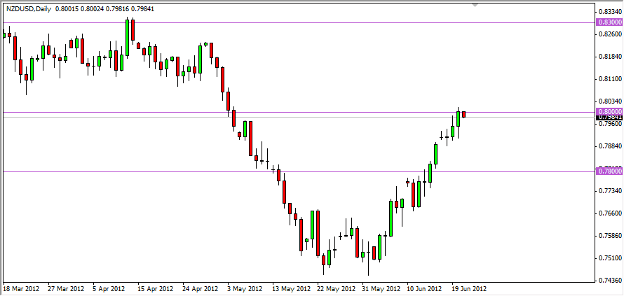 The 0.80 level seems to be holding this pair back at the moment and this is what I am using for a “trigger point” in this pair. The 0.83 level above looks as if it is the top of the resistance level above, and as a result I think that the road ahead could be ugly for the bulls. Granted, I cannot rule out that we go higher, just that there is a lot of “noise” all the way up to the top. Because of this, I prefer to sell – not to mention all of the potential bad headlines that are out there waiting to happen.