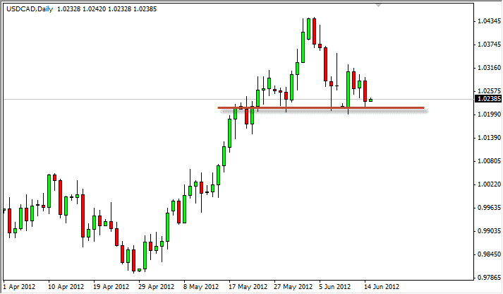 The pair has an obvious support level at the 1.02 level, and it appears in early trading for the Friday session that we are seeing a bit of a bounce. However, it really will come down to if the central banks do anything as far as easing – especially the Fed – as to what the next move in this pair could be from a long term point of view.