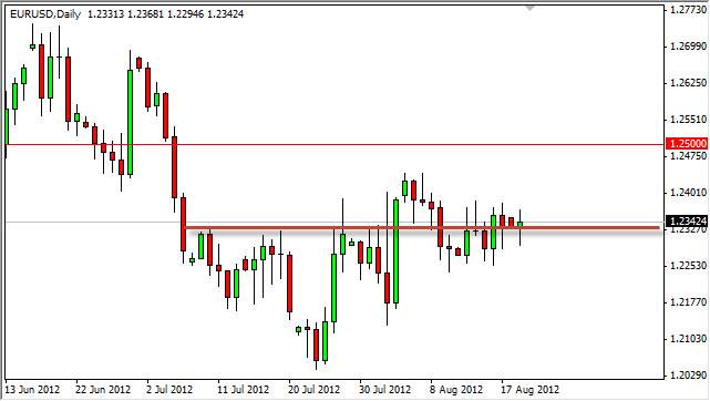 EUR/USD had a fairly quiet session on Monday as the markets simply have no real catalyst to push them in either direction. However, I do have to admit that the action looks relatively supportive at this point in time. The 1.23 level is an area that looks like it wants to be supportive at this point, and although I am very bearish on the Euro in general, I have to admit this area is an issue for sellers.