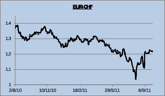 From talks with the forex trading desks at large brokers across the street, we learned that in the last few months, inflows of money to the CHF as a safe haven has diminished considerably (not to say, stopped completely). Many players internalized already how committed the SNB is to maintain the 1.20 floor. In addition, the chances of a total meltdown in Europe now seem smaller. Many who sold the EUR and bought the CHF as defense turn out to be underestimating the determination in which political and economic leaders in Europe were to maintain the monetary union intact. The probability of an exit of one of the distressed member states from the Eurozone is now considered to be close to zero, which is far from where it was a year ago. Although problems sin Spain and Greece mainly have not disappeared completely, it is clear, that the EU will go to great length and is willing to pay dearly to avoid a disorderly default and/or an exit of a state from the union, a thing that will trigger the havoc that the CHF was bought to protect investors from in the first place.