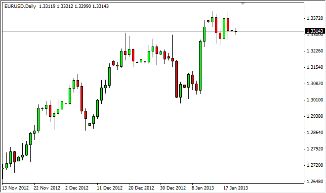 The EUR/USD pair did almost nothing during the Monday session, as would be expected as the United States was celebrating Martin Luther King Jr.'s birthday. Because of this, the markets are very illiquid, and we saw almost nothing out of Forex markets during North American hours. Also, it should be noted that the Bank of Japan is having a massive announcement early Tuesday morning and Asia, and as a result a lot of traders simply would not have wanted to take on any additional risk at this point.