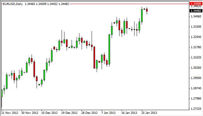 The EUR/USD pair fell during the session on Monday as the profit taking began. Quite frankly, the latest move has only reinforced in my mind that we will eventually break above the all-important 1.35 resistance level. This level is so important because it is exactly halfway between the 1.20 support and 1.50 resistance level on the longer-term charts. In fact, they could be said that the pair has simply been consolidating between these two levels for the last couple of years. With that being the case, we could see a run back towards the top again.