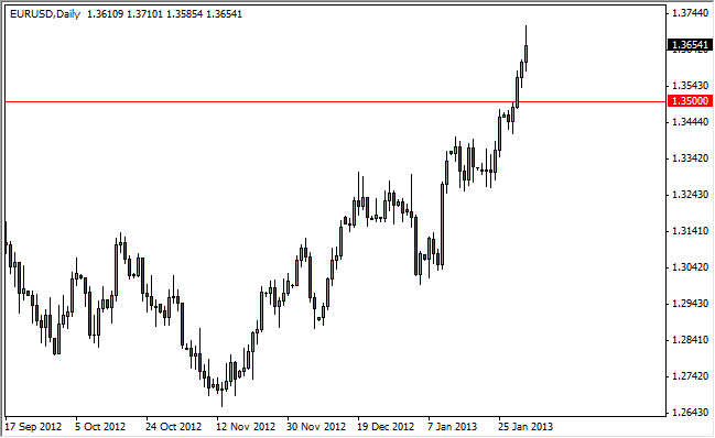 The EUR/USD pair rose again on Friday as the Non-Farm Payroll numbers came out as expected. The lack of bad news allowed the bulls to come back out, and as a result the bullish behavior of this market continued. The pair has been on a tear lately, and there is absolutely nothing to suggest that the market is about to turn back around for anything substantial.