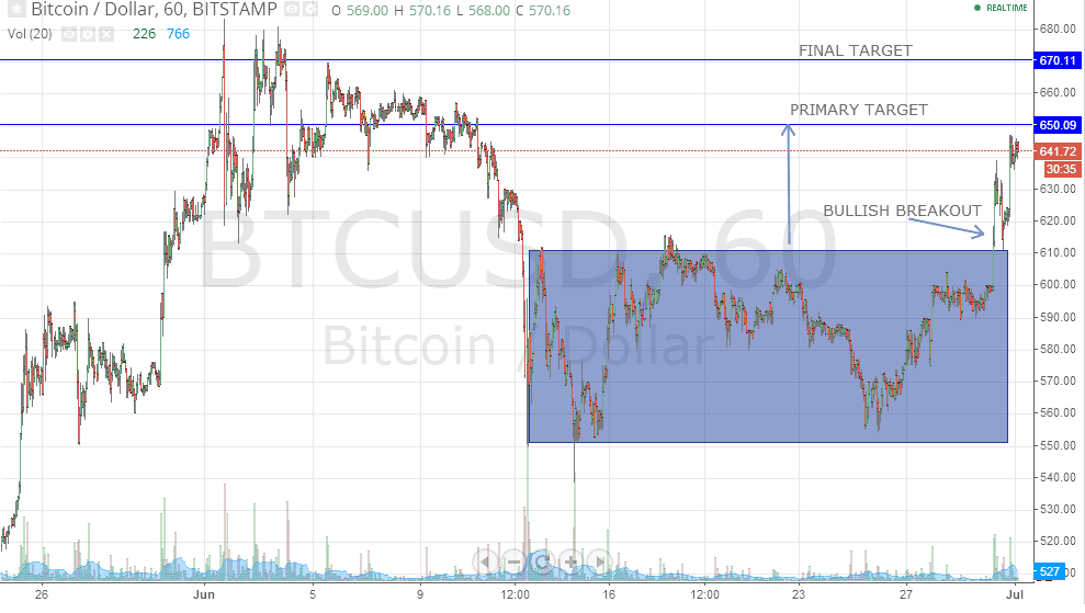 The USMS auction brought great news for Bitcoin traders and investors, who for a long time, have been waiting for a good breakout. After spending a considerable period near 600-610 levels, the price finally broke free and shot up nearly 7% to 640 levels owing to a successful auction in which 45 registered bidders participated.