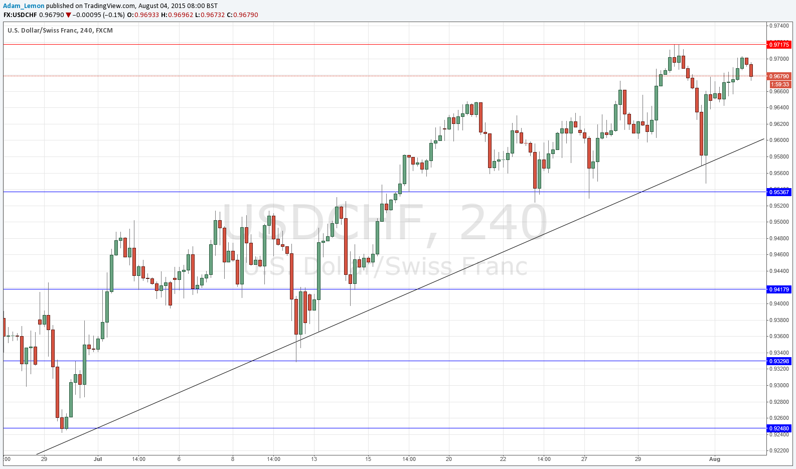 Yesterday’s signals were never triggered as the price did not reach 0.9600.