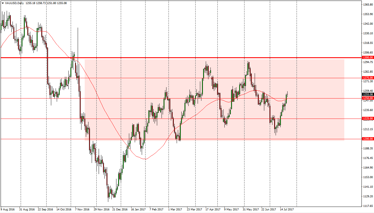 Gold markets had a choppy session on Monday, as we went back and forth in early trading, and eventually settled near the $1255 level. What I find interesting about this is that the market went sideways, after a very explosive moved to the upside. I feel that this market probably needs to pull back, as the bullish pressure can’t run forever. When you look at the 50-day exponential moving average, it’s very flat, so I think we continue the overall consolidation. This means that the market could find its way towards the $1300 level, but since we are overextended currently, I think there’s a good chance that we may pull back to build up more momentum.