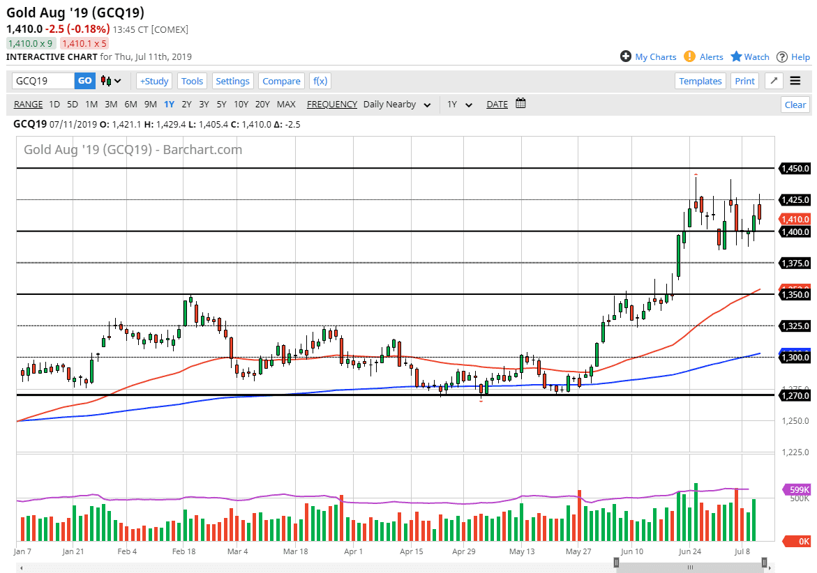 Pullbacks offer plenty of support underneath, so I think it’s only a matter time before that comes to play. However, if we were to break above the $1450 level, then the market is free to go much higher. That would be an explosive break to the upside and show yet another impulse higher. Either way, I have absolutely no interest whatsoever in trying to sell gold, as we are starting to enter a longer-term bull move, and I think there’s no way to short this market with any type of confidence. If we break down below the support of the last couple of weeks, we could get a big flush, but that should offer quite a bit of opportunity.