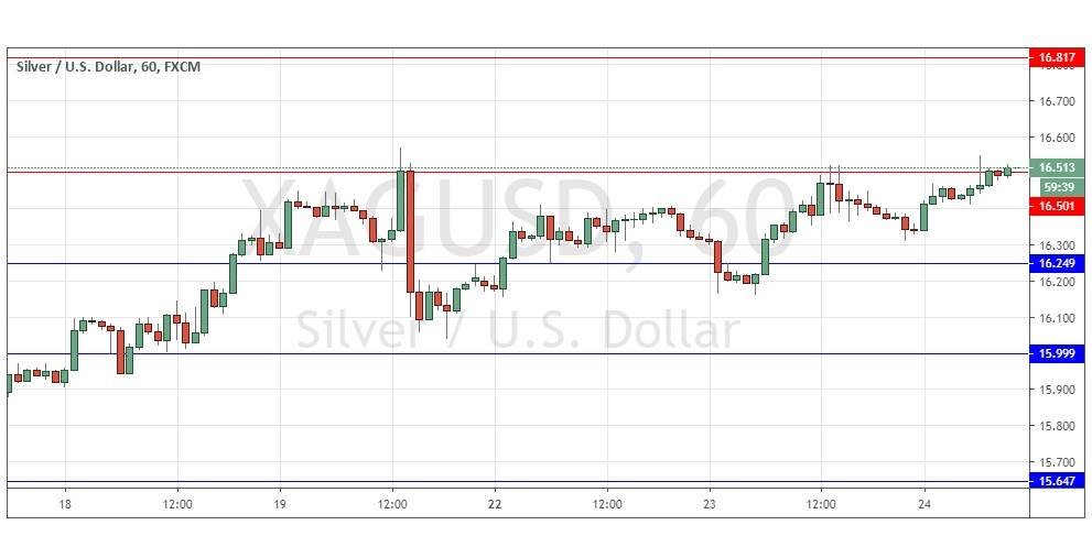 Silver seemed well positioned to make another upwards thrust on Monday after reaching a 1-year high above the big half number at $16.50 at the end of the previous week. However, that day the price reacted bearishly and appeared to break below the support at $16.25. A little surprisingly, the price made a strong recovery over the next day and is now struggling to really get established above the resistance at $16.50 which is getting slowly eaten up and invalidated. If the price holds up and then breaks really solidly above $16.50 in the early part of the New York session, I would be very bullish and look to trade long up to at least $16.75 and possibly even higher than that.XAGUSDThere is nothing of high importance due today regarding the USD.