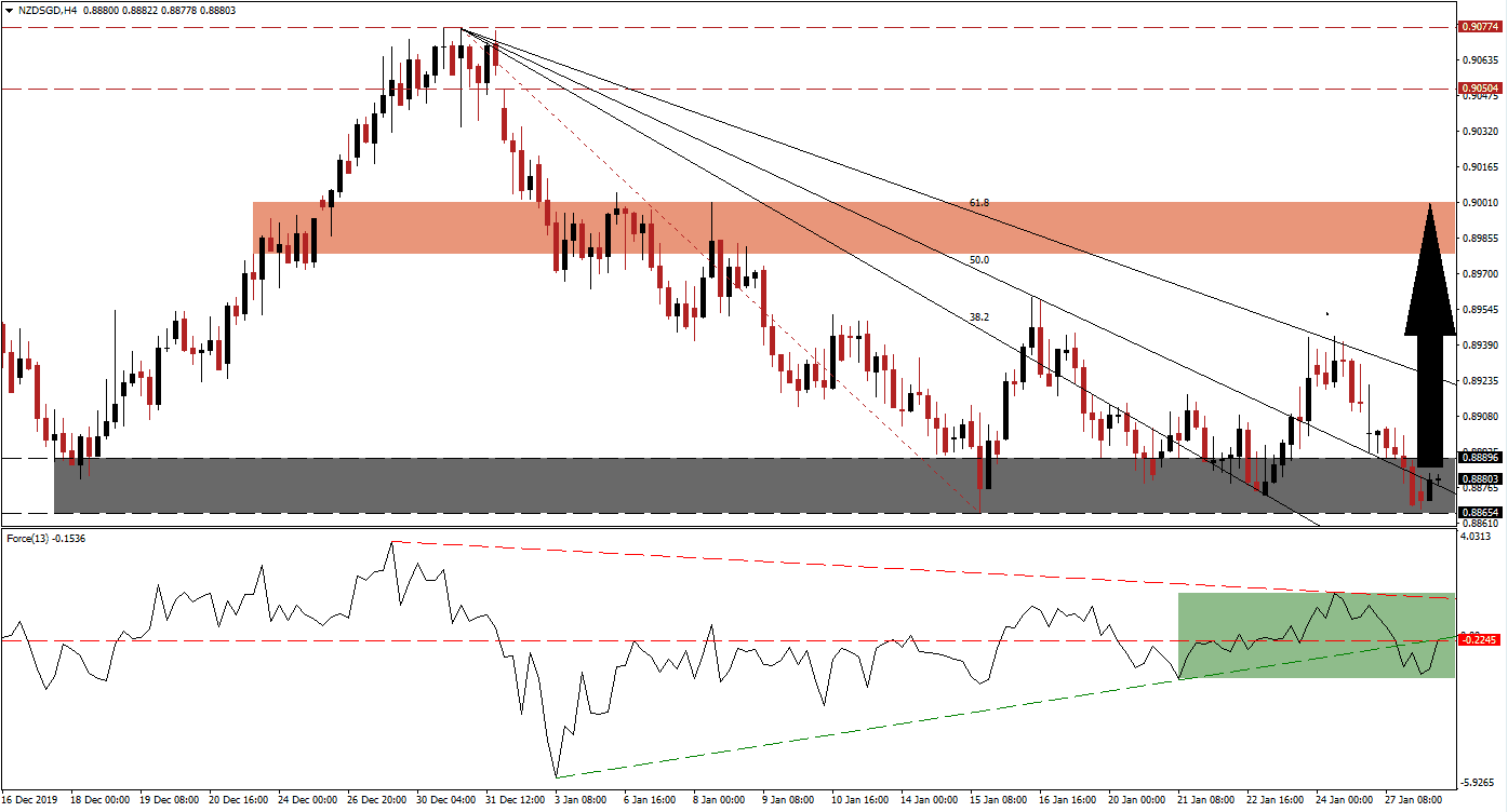 Following a sharp corrective phase, the NZD/SGD entered a sideways trend after moving into a substantial support zone. The Singapore economy has shown signs of weakness, and the spread of the deadly coronavirus is adding downside pressure to the export-oriented city-state. Capital inflows from Hong Kong have peaked, and the catalyst priced into the Singapore Dollar. Tourism in New Zealand will face a negative impact but is expected to remain a short-term disruption, with the long-term outlook for this currency pair bullish. You can learn more about a support zone here.