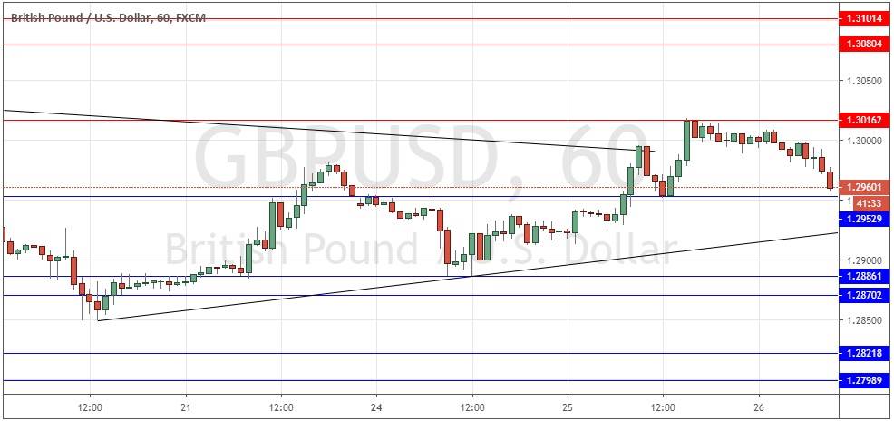 Yesterday’s signals were not triggered as the price action rejecting the resistance level at 1.3016 was insufficiently strong to trigger a short trade entry. However, this level very accurately capped the high of the day to the pip.