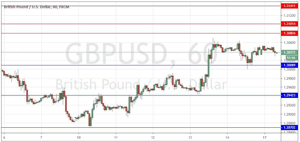 This was a fairly good call, as we did get a weakly bullish movement. The price has been able to get established above the round number at 1.3000 and the slightly higher new support level at 1.3009. However, this weakly bullish movement now faces a cluster of resistance between 1.3080 and 1.3101 which will probably be too firm to break during today’s likely quiet market.