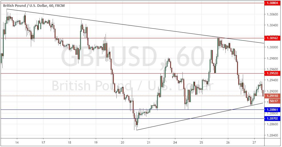 Yesterday’s signals were not triggered, as there was no bullish price action when the support level identified at 1.2953 was reached.