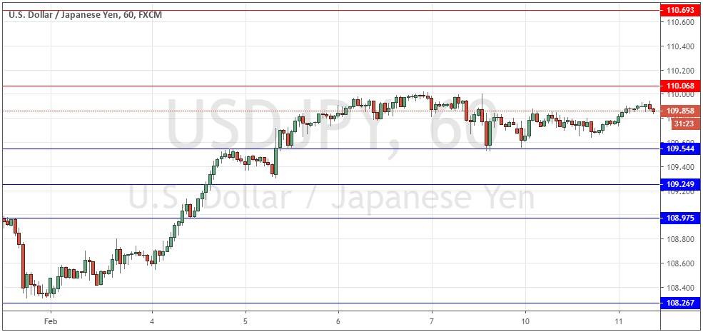 I think the best approach is still to wait for a breakout above 110.07, in which case I would take a bullish bias. A long trade from a bounce following a retracement to 109.54 could also be a good trade.