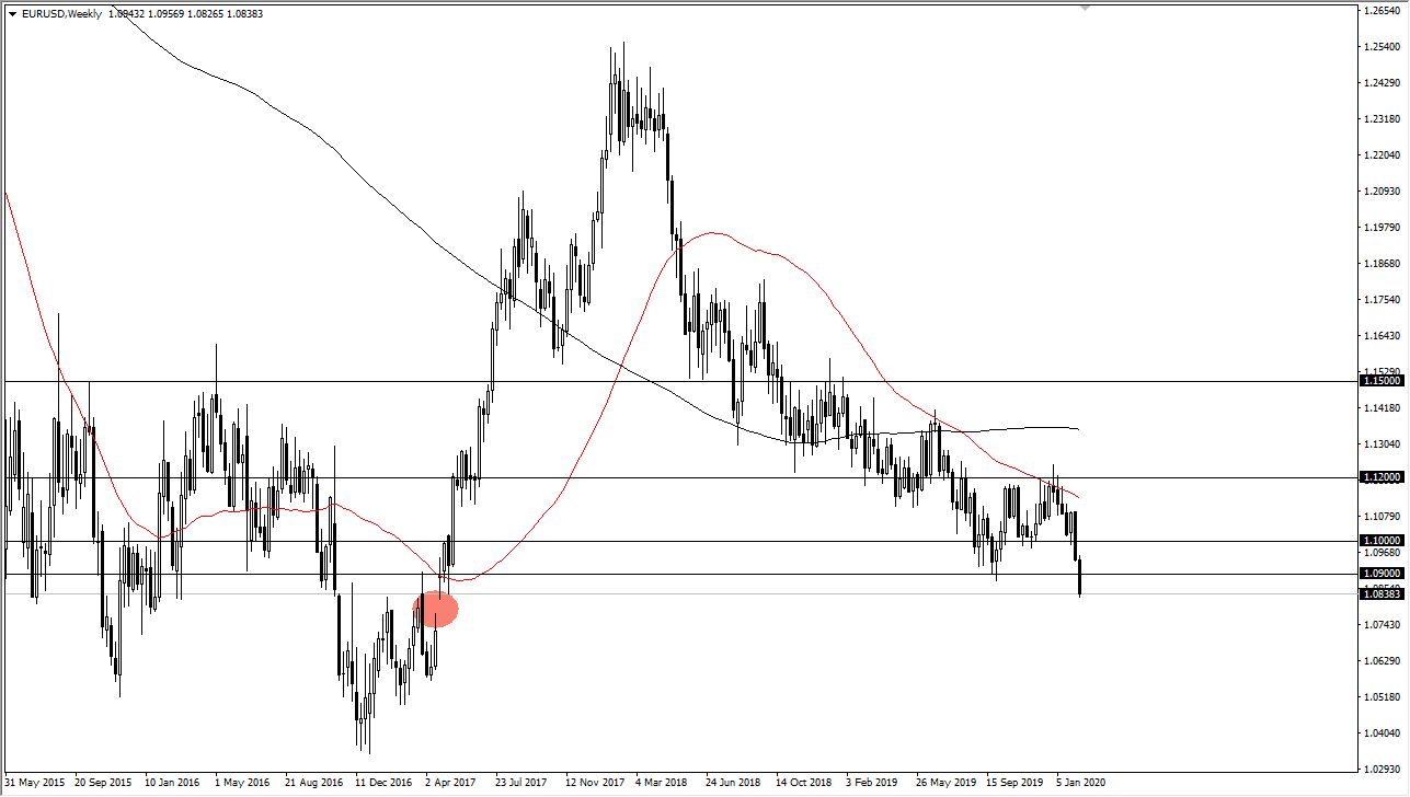 The Euro never ceases to amaze me. It will do nothing for months on end and then suddenly take off. That’s what we’ve seen over the last couple of weeks, as we have sliced through the 1.09 level. As you can see on the longer-term chart, there is a gap that I have highlighted closer to the 1.0750 level, and I think that’s where we are going. Short-term rally should continue to be sold into, just as you can say over the last couple of years. Nothing has changed and it looks as if the German economy is getting worse, not better. With this, the Euro will continue to be a currency you should be selling.