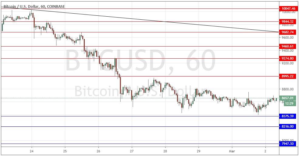 Long entry after a bullish price action reversal on the H1 time frame following the next touch of $8,375, $8,216, or $7,947.
