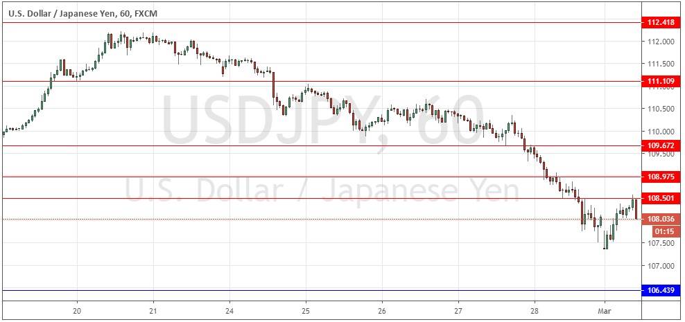 Risk sentiment recovered a little late on Friday and since this week opened with central banks in the U.S. and Japan both expressing a willingness to intervene in the markets. This brought a little stability, but as long as this pair continues to reject the pivotal resistance level at 108.50 it will continue to look bearish. It seems likely that markets will remain prone to risk-off flows into the Yen unless and until it becomes clear that a real coronavirus pandemic is not going to happen, and that will almost certainly take a few days at least.