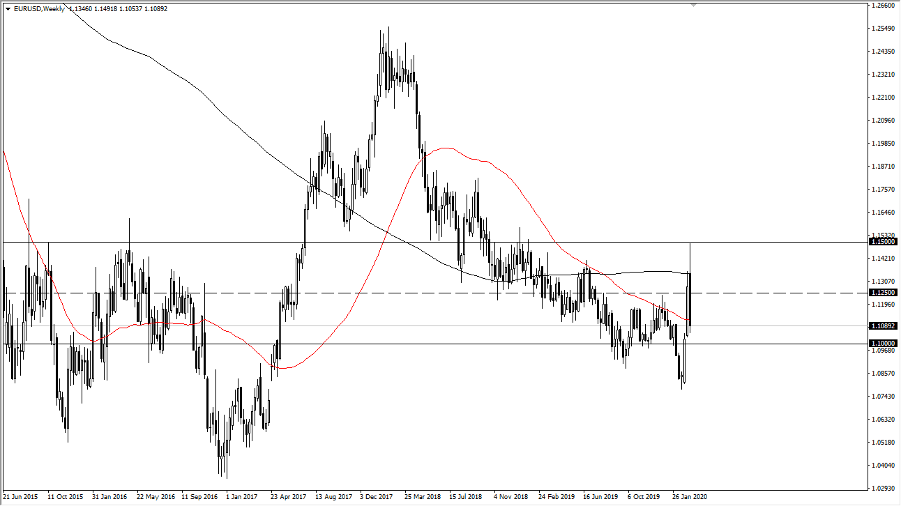 The British pound gapped lower against the Japanese yen, bounced a bit, and then broke down significantly during the week before bouncing again on Friday. I believe that the ¥130 level is your “floor” at the moment, and that the ¥135 level is probably going to be resistance. I would play both of these levels to form a range, but if we were to break above the ¥135 level it’s very likely that the market then goes looking towards the ¥137 level next. Keep in mind that this pair is highly sensitive to risk appetite, so this will go up and down with the markets, but I think at this point any relief rally will probably be sold into, not only in this market but many others.