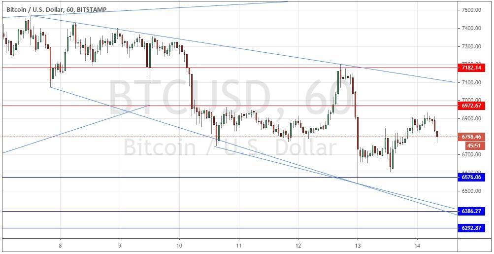 The price chart below is dominated by a bearish wedge which seems to be pushing down the price. However, I think the nearest support level at $6,576 looks strong.