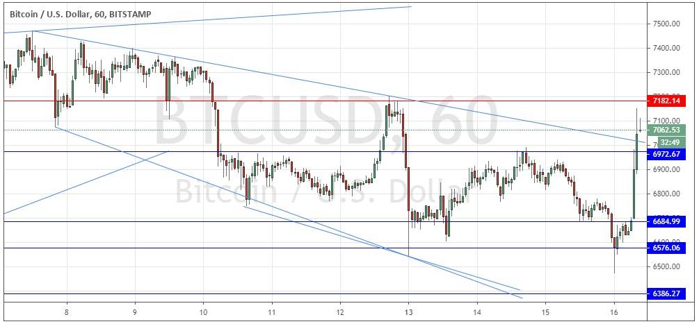 I wrote last Tuesday that although I thought the nearest support level at $6,576 looked strong, I still wanted to take a weakly bearish bias between $6,973 and $6,576. I was prepared to enter a short trade from a bearish bounce off $6,973 due to the dominant bearish wedge pattern.