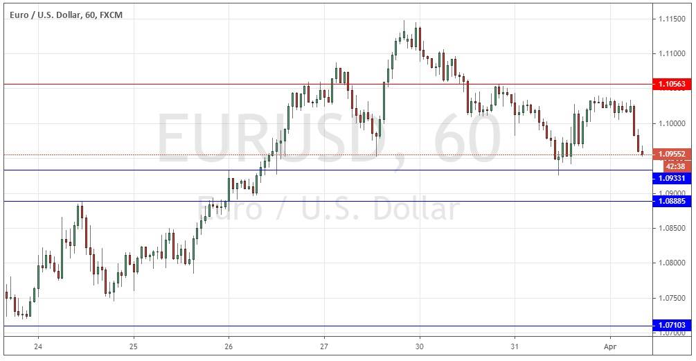 Go short following a bearish price action reversal on the H1 time frame immediately upon the next touch of 1.1056.