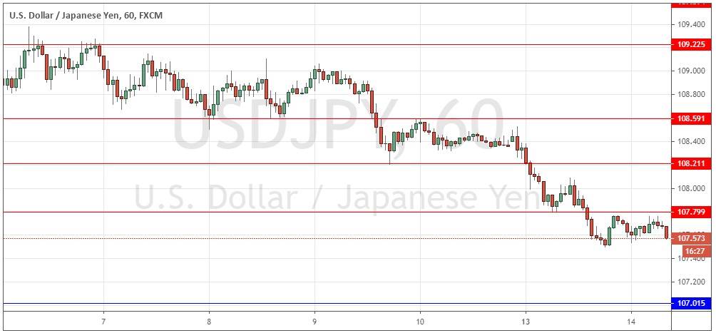 I was broadly right to look to the bearish side as the old resistance level at 107.80 has continued to hold, and it looks as if the price is taking a bearish turn again and getting ready to move down to the round number at 107.00. However, much will probably depend upon how the U.S. stock market acts when it opens later today – it rose in off-hours trading earlier after falling yesterday, so the outlook still looks unpredictable beyond our knowledge that the bullish retracement has reached a key technical level.