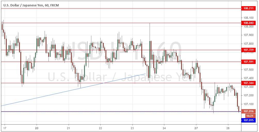 Yesterday’s Signals produced a profitable long trade from the bullish rejection of the support level identified at 107.02, but this trade only gave the minimum 20 pips of profit to break even.