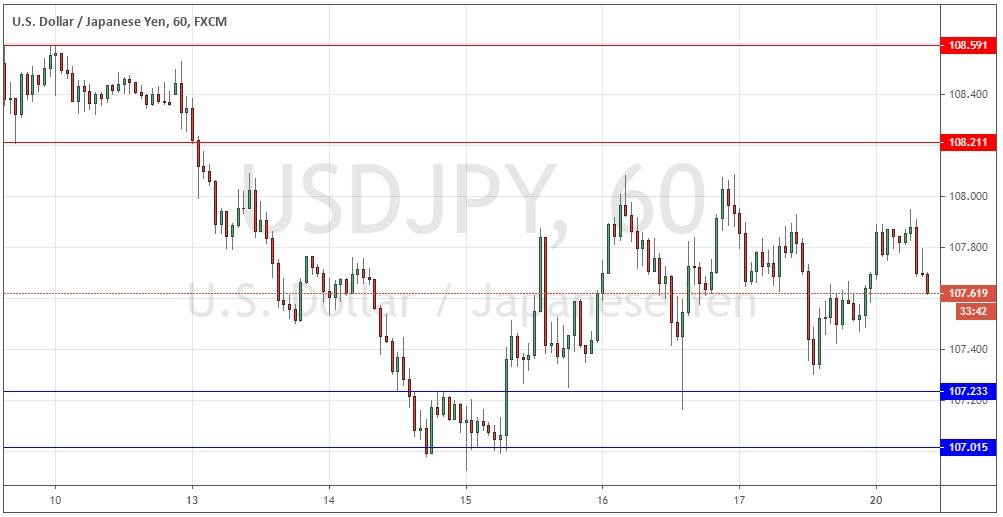 Short entry following a bearish price action reversal on the H1 time frame immediately upon the next touch of 108.21 or 108.59.