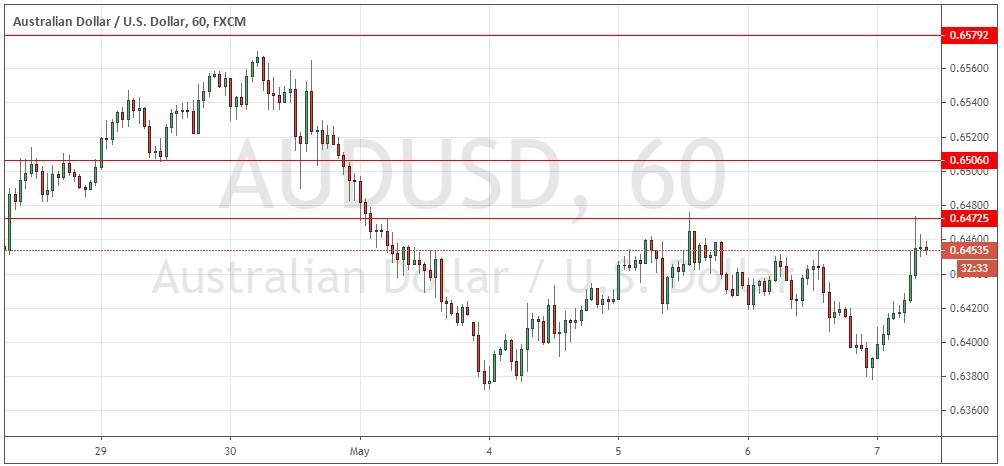 Yesterday’s signals were not triggered, as the price did not reach the resistance level identified at 0.6473 until after 5pm Tokyo time.