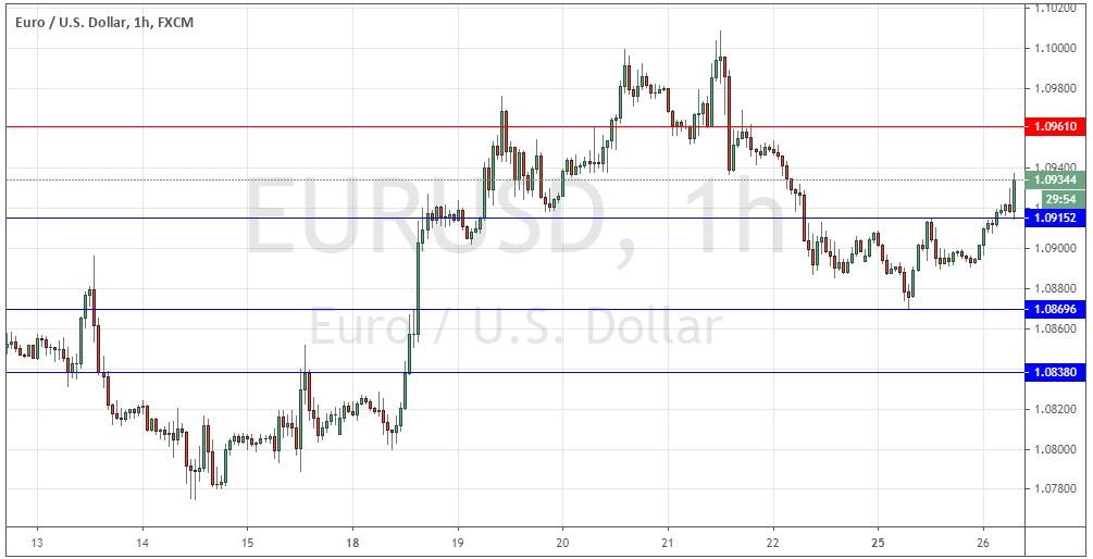 I am ready to take a short trade from any strong bearish reversal which happens today anywhere between 1.0961 and 1.1056. If the rejection hits the huge round number at 1.1000 when it makes such a reversal, I will have even stronger confidence in it.