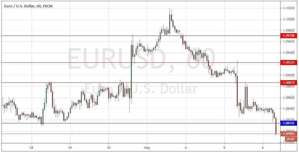 I wrote yesterday that the short-term action suggested that the price was a little more likely to move down that up today, so a strong bearish reversal from 1.0923 could give a short trade entry opportunity and I would take it. This was a good call as this did set up and provide a profitable short trade entry, although I did expect the support at 1.0840 to hold so maybe that made my call less valuable.